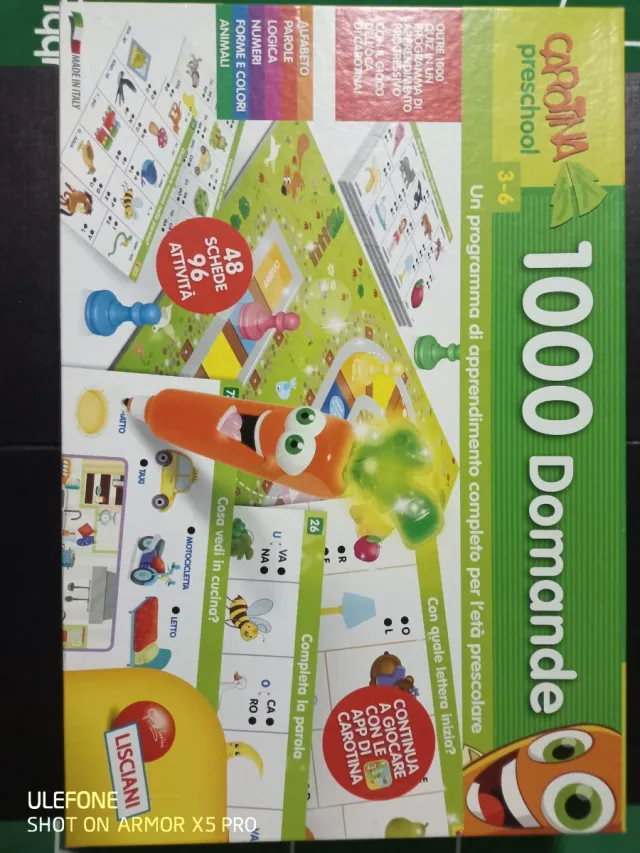 Dettagli del prodottoGioco educativo 1000 Domande di Carolina, perfetto per l'età prescolare (3-6 anni). Aiuta i bambini a imparare attraverso quiz progressivi.