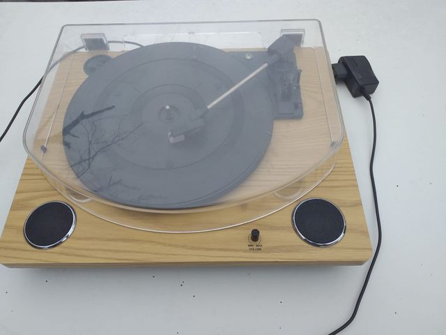 giradischi moderno perfettamente funzionante con casse incorporate legge 33 e 45 giri completo.