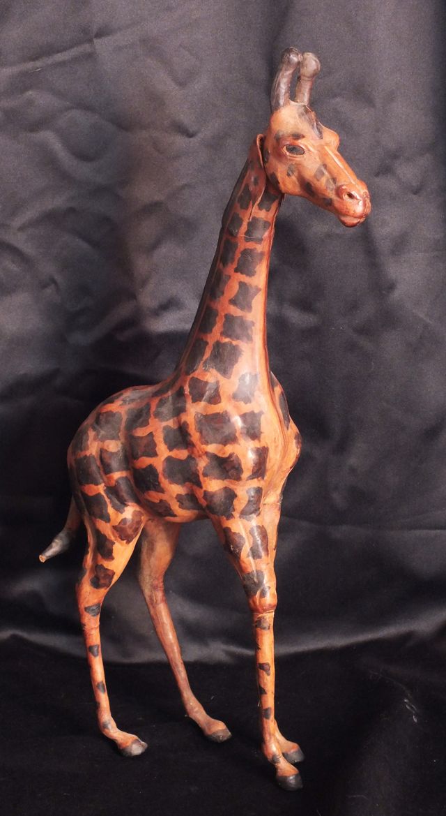 Giraffa alta una quarantina di cm fatta di pelle imbottita. ha qualche segno del tempo ma è ancora in ottimo stato.