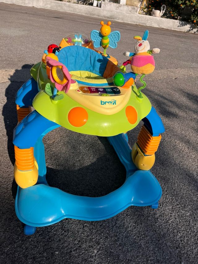 Girello per bambini Brevi, colorato e divertente. - Seduta imbottita e confortevole. - Giocattoli interattivi inclusi. - Base ampia e stabile.