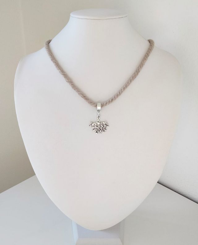 Dettagli del prodottoCollana girocollo in morbida corda 100% riciclata, colore naturale.