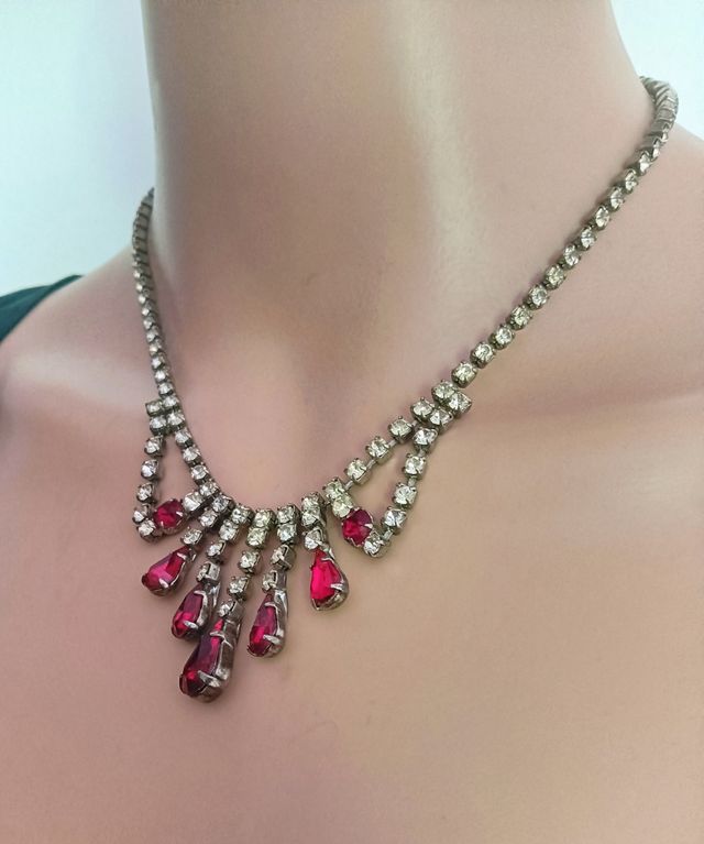 Girocollo vintage strass rosso e argento