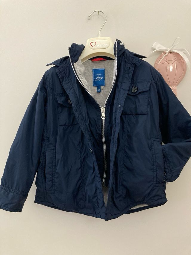 Giubbino Fay taglia 4 anni, blu con interno grigio! Cappuccio a scomparsa