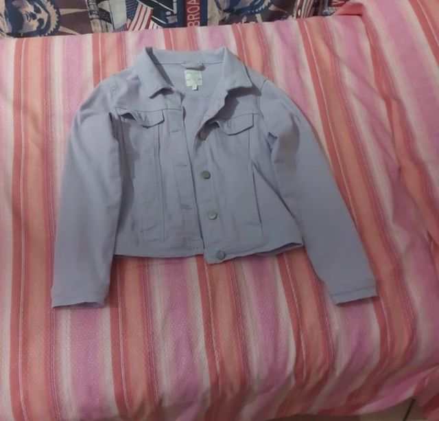 Dettagli del prodottoGiubbino in denim color lilla, perfetto per la primavera o l'estate. Un capo versatile e alla moda.