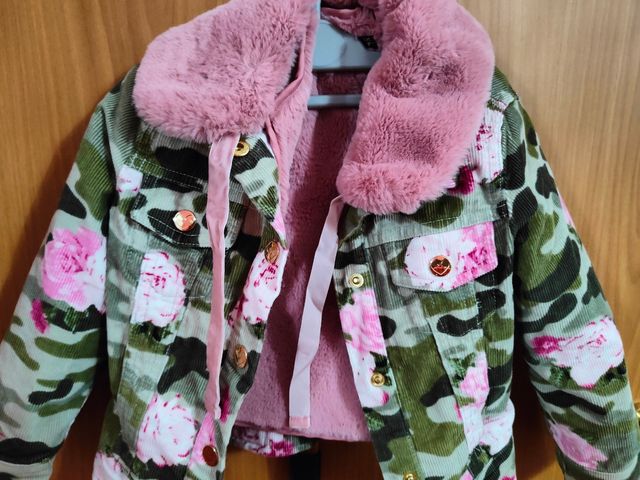 Dettagli del prodottoBellissimo giubbottino per bambina con una fantasia unica che unisce elementi floreali e camouflage. L interno sfoderabile è in morbidissima e caldissima pelliccia rosa.