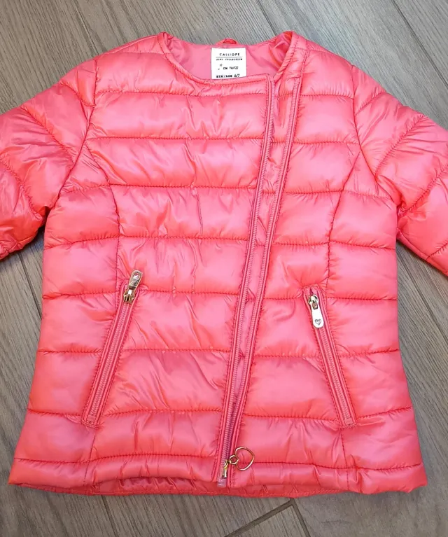 Bellissimo giubbotto imbottito per bambina, colore rosa corallo. - Marca: Calliope - Taglia: 6-7 anni (CM 116/122) - Chiusura zip asimmetrica - Tasche laterali con zip