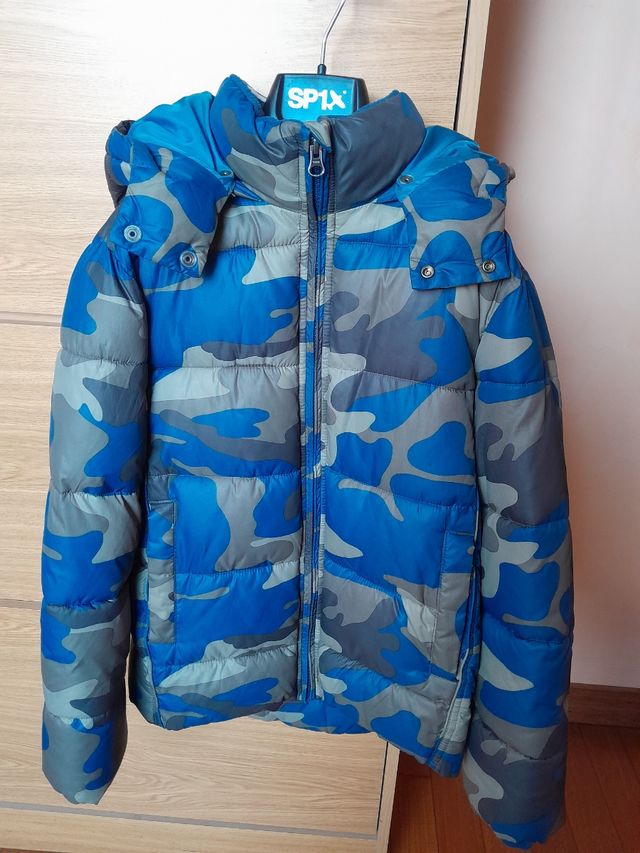 Giubbotto Benetton età 8/9 anni blu e grigio con cappuccio staccabile. Caldo e comodo. Usato, ma in buono stato.