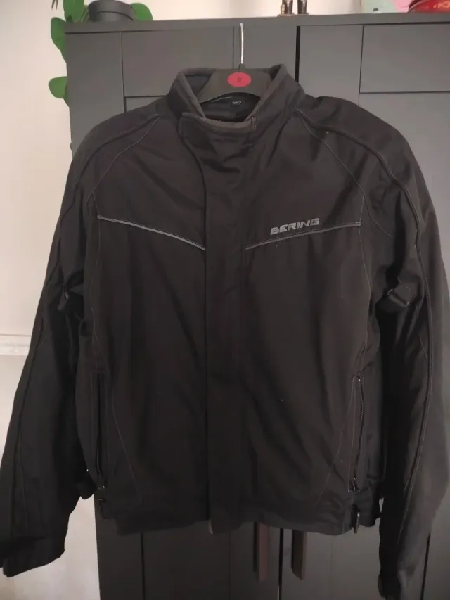 Dettagli del prodottoGiubbotto da moto Bering in colore nero. Presenta dettagli riflettenti lungo le cuciture. Sfoderabile con protezioni spalle e gomiti