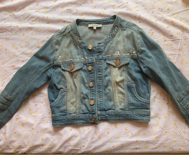 giubbotto di jeans twinset, usato ma rimasto in ottime condizioni. - Modello corto. - Lavaggio in denim chiaro. - Chiusura con bottoni.