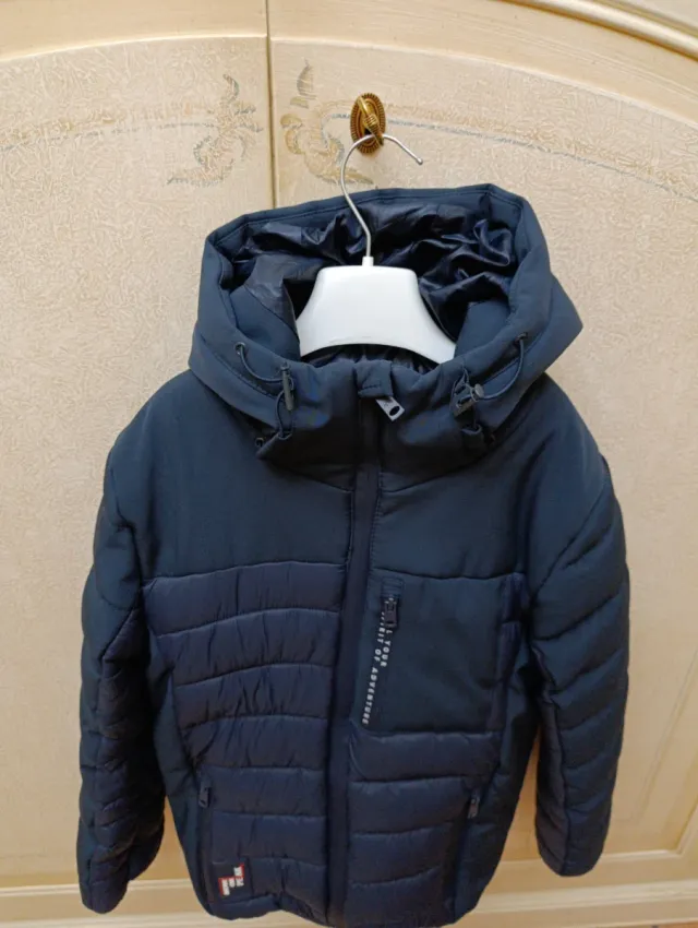 Dettagli del prodottoGiubbotto invernale per ragazzo, taglia 9/10 anni. Colore blu scuro, con cappuccio e chiusura zip frontale. Presenta dettagli trapuntati e una tasca con zip sul petto.