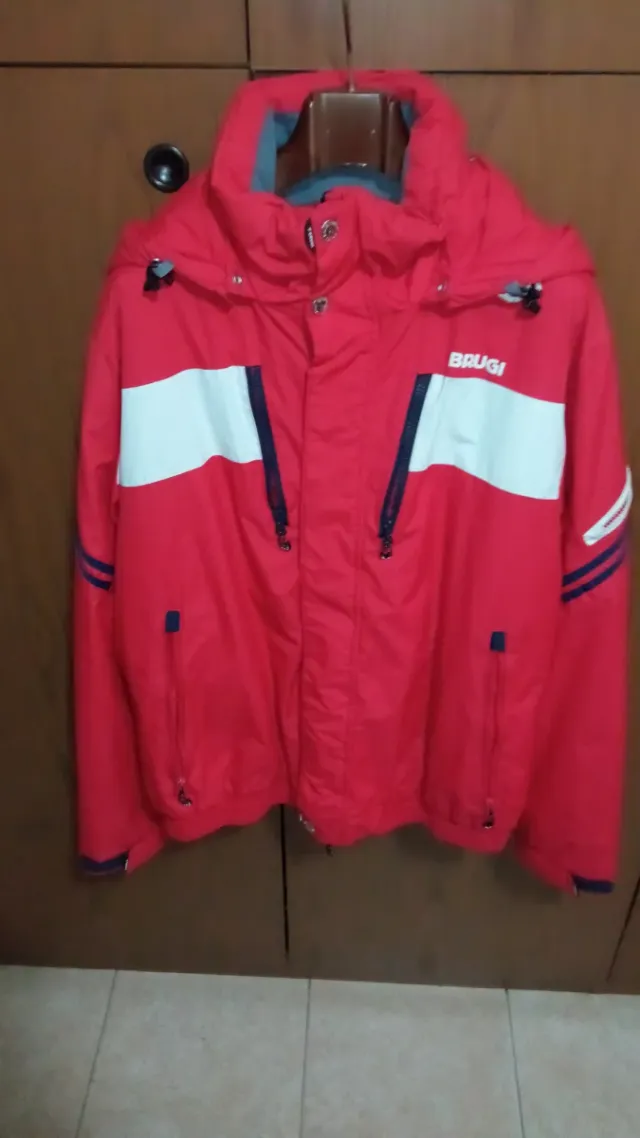 Dettagli del prodottoGiubbotto da neve Brugi in colore rosso con dettagli bianchi e blu.