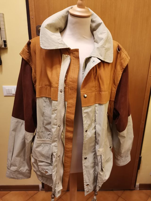 Giubbotto sportivo vintage in tessuto e pelle, le maniche si tolgono e diventa gilet,