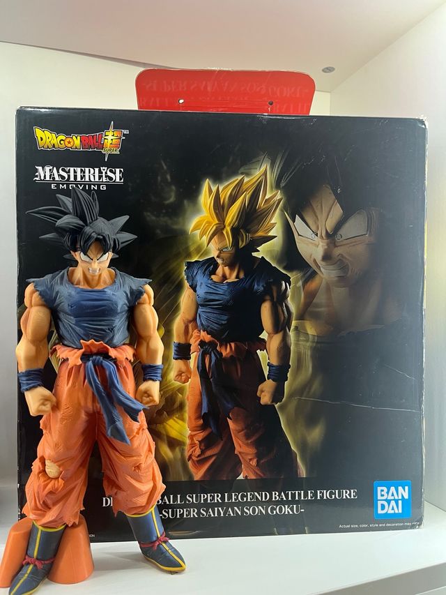 Dettagli del prodottoFigura de Son Goku Super Saiyan della linea Masterlise EMOVING di Banpresto. Completo di altre due teste e braccia.