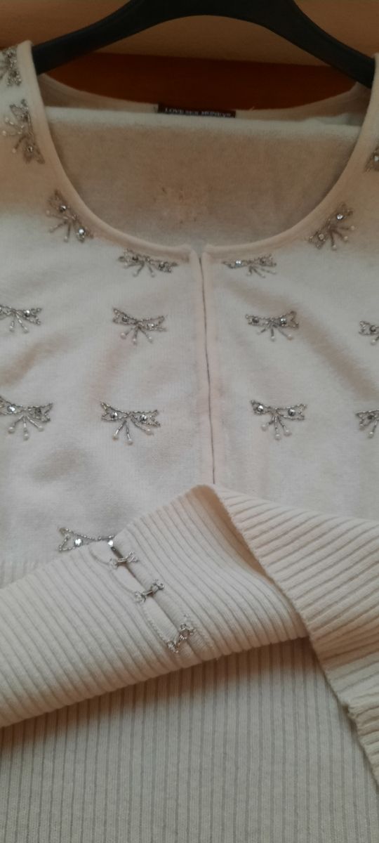 Golf cachemire bianco panna. apertura nascosta sul