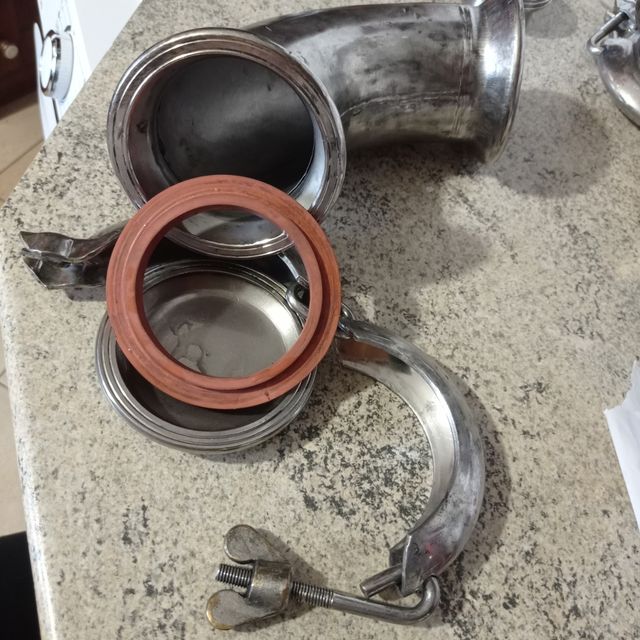 gomito al 90 industria alimentare acciaio inox 85 mm diametro con tappo. usato ben conservato