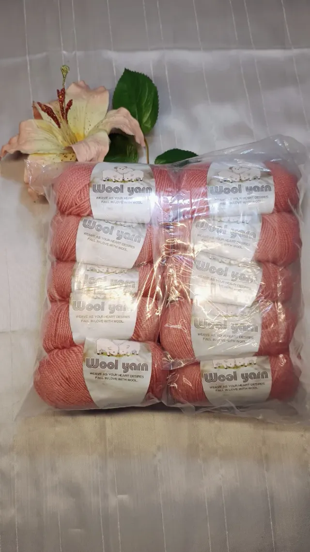 Confezione di gomitoli di lana color rosa. - Materiale: lana 95%, - Colore: rosa, - 10 gomitoli, tot 500 gr.