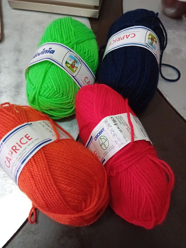 N4 gomitoli di lana acrilica di vari colori(verde, rosso,arancio,blu)