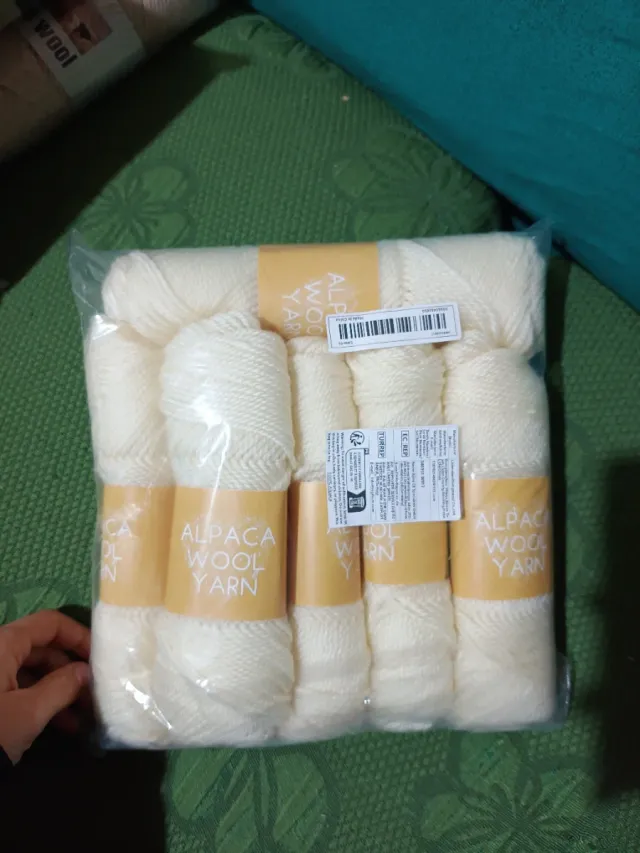 Confezione di gomitoli di lana alpaca color panna. 450g. - Materiale: lana alpaca 100% - Colore: panna - Quantità: 6 gomitoli