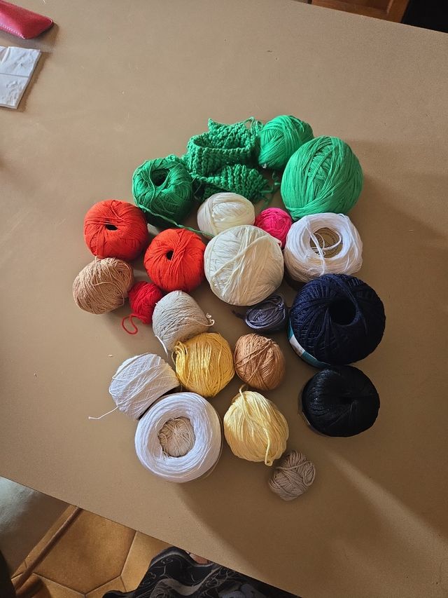 Dettagli del prodottoBellissimo assortimento di gomitoli di fettuccine e cotone, perfetti per i vostri progetti creativi! Sono in ottime condizioni e pronti per essere utilizzati.