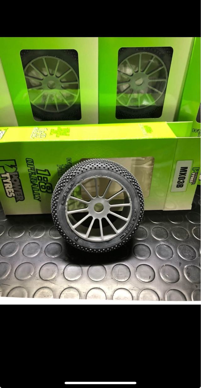 Dettagli del prodottoVendo gomme nuove per buggy 1/8 rc. Il modello è il Power Tyres MX03B. Sono perfette, mai usate.
