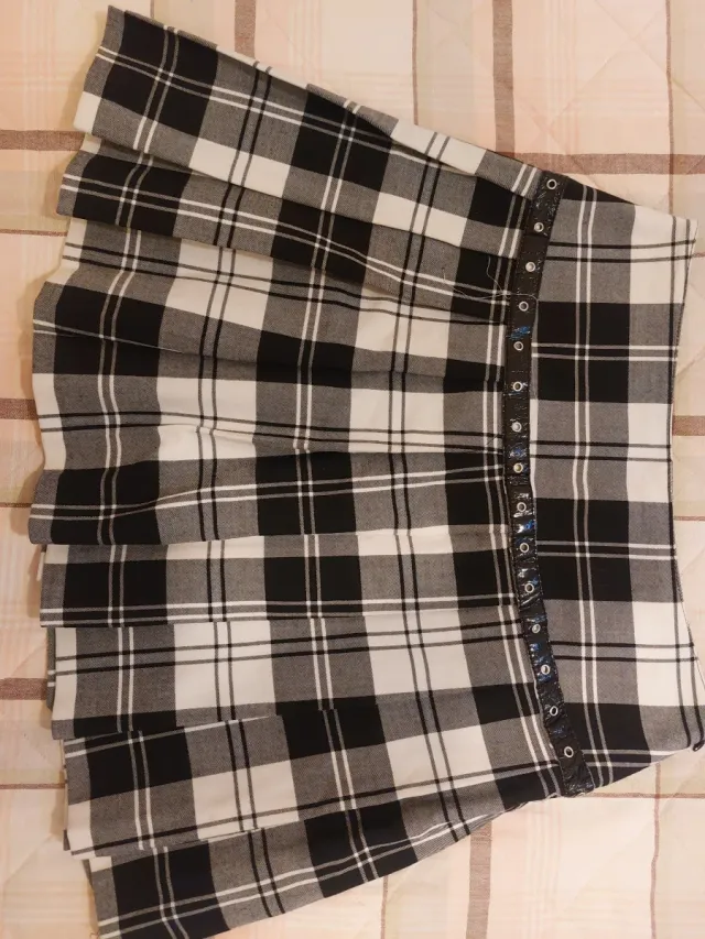 Gonna corta a pieghe scozzese bianco e nero