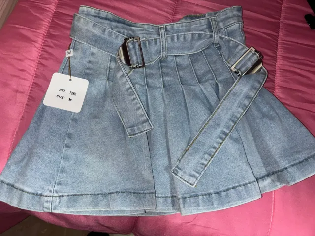 Gonna di jeans a pieghe con cintura