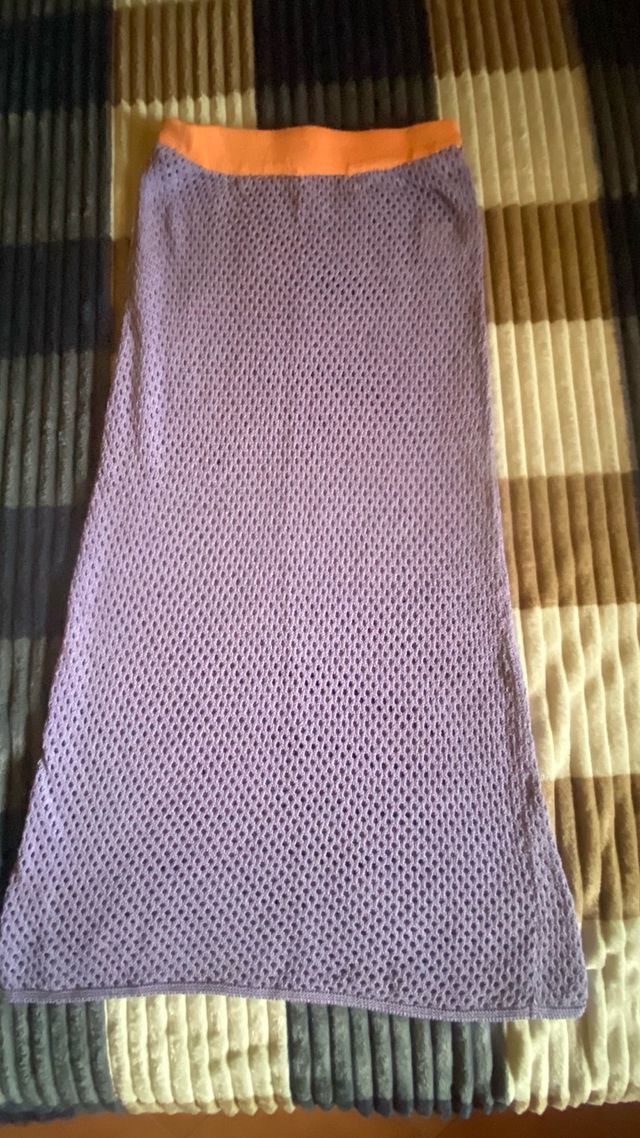 Gonna lunga viola con elastico arancione