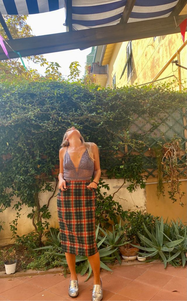 Dettagli del prodottoStupenda gonna vintage sartoriale fantasia colorata a scacchi. Modello a tubino con spacco sul retro. Tasche laterali, passanti in vita, lunghezza al ginocchio. Ha la fodera interna, cartellini non presenti. Pesantezza media. Ottime condizioni. Misure: vita 33, lunghezza 68.