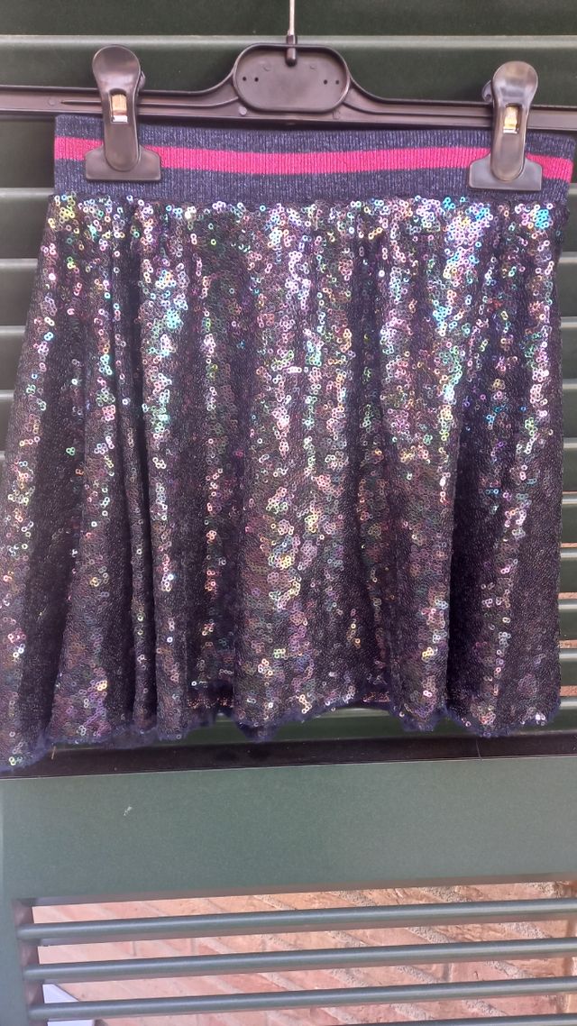 Gonnellina con elastico in vita ricoperta di pailletts multicolor anni 7-8 altezza 128 cm