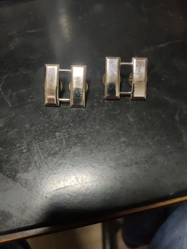 Coppia di distintivi da bavero per ufficiali dell'esercito americano. - Distintivi da capitano. - Metallo argentato.