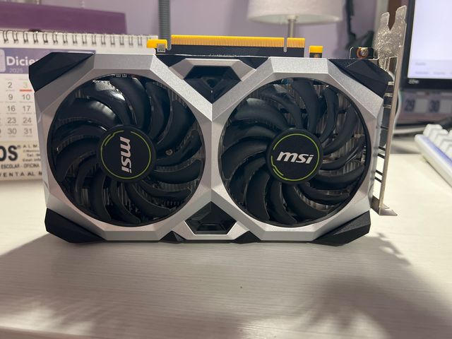 Dettagli del prodottoScheda grafica MSI Nvidia GTX 1660 Super con doppio ventilatore. Design argento e nero. Ventilatori con logo MSI. Prezzo negoziabile. La descrizione è stata tradotta automaticamente.