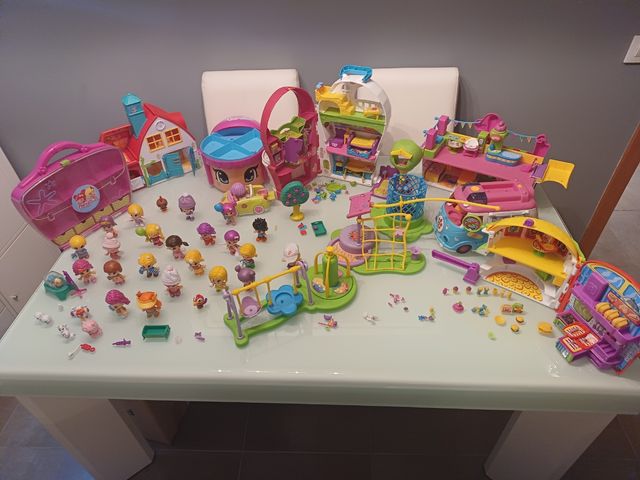 Dettagli del prodottoIn vendita set completo, ben mantenuto. Ristorante per hamburger, parco, furgone veterinario, parco giochi per bambini, casa, fattoria, deposito per bambole e accessori e valigetta. 24 bambole, più animali domestici, accessori, ecc... Mancano solo lo scivolo del campo da baseball e la torre del parco. La descrizione è stata tradotta automaticamente.Misure del prodotto