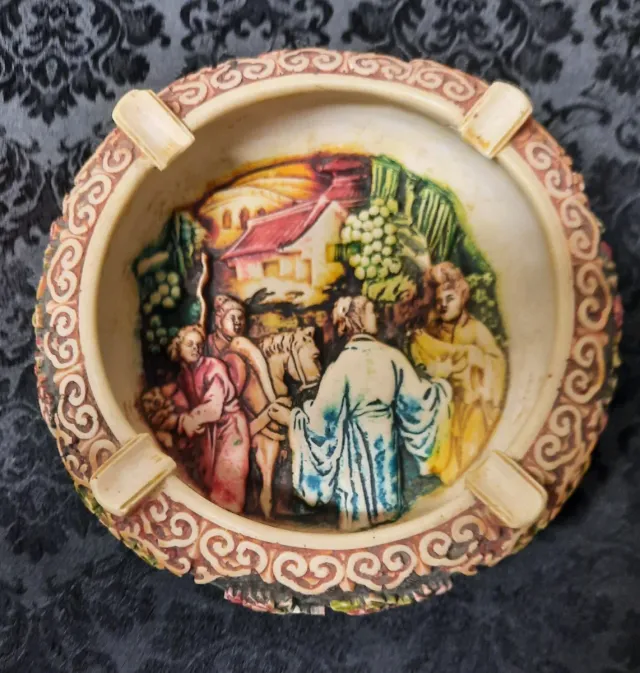 Dettagli del prodottoPosacenere vintage di grandi dimensioni con una scena dipinta a mano.