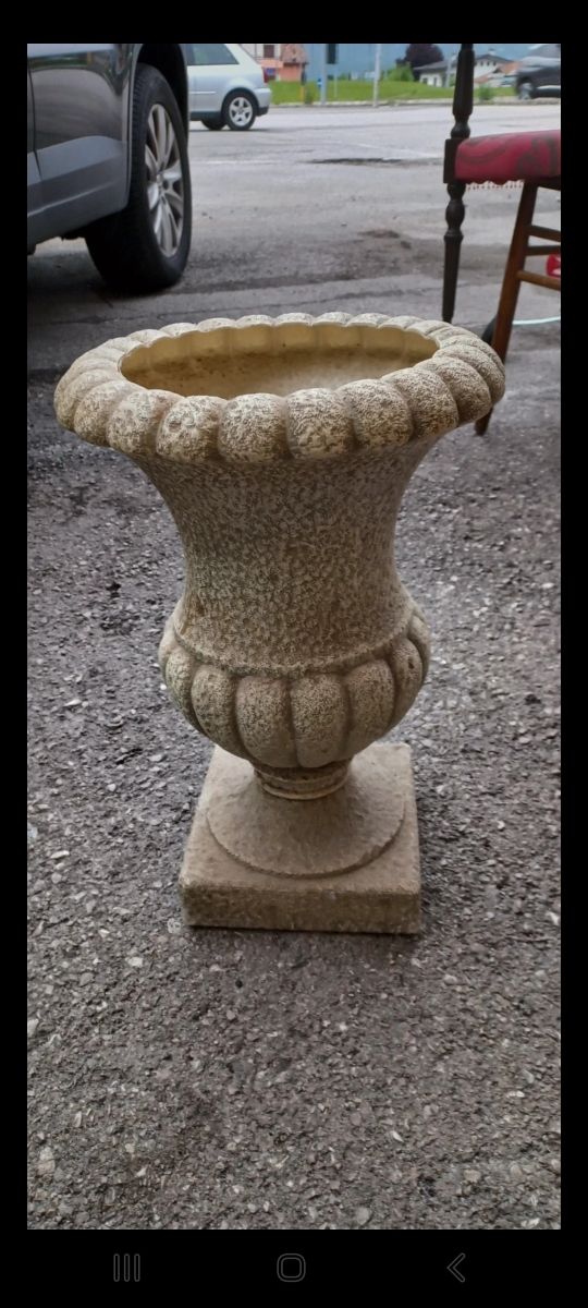 Dettagli del prodottobel vaso in plastica dura sembra in sasso ha più di 40 anni ma è messi bene io ho messo i sassolini per alzare la piantina molto d'effetto euro 12