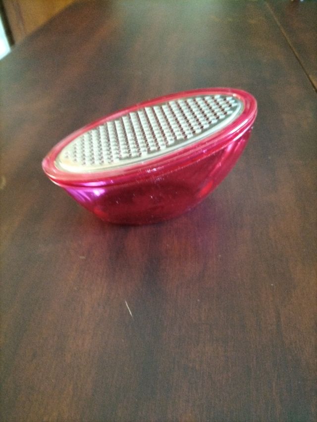 Dettagli del prodottoUsata, ma in ottime condizioni generali. Ha soltanto 1 piccola riga come da penultima foto. Misure altezza cm.9 dalla parte più alta e larghezza cm.15 circa. Oltre a grattugiare togliendo la grattugia viene usato come formaggi era etc.