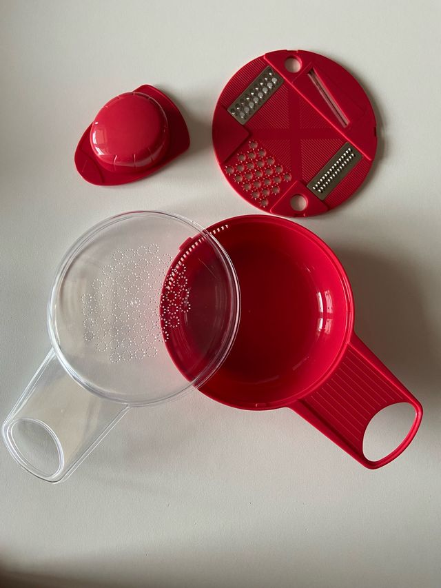 Grattugia con 4 opzioni di grattugia/taglio compresa di coperchio e proteggi mani.