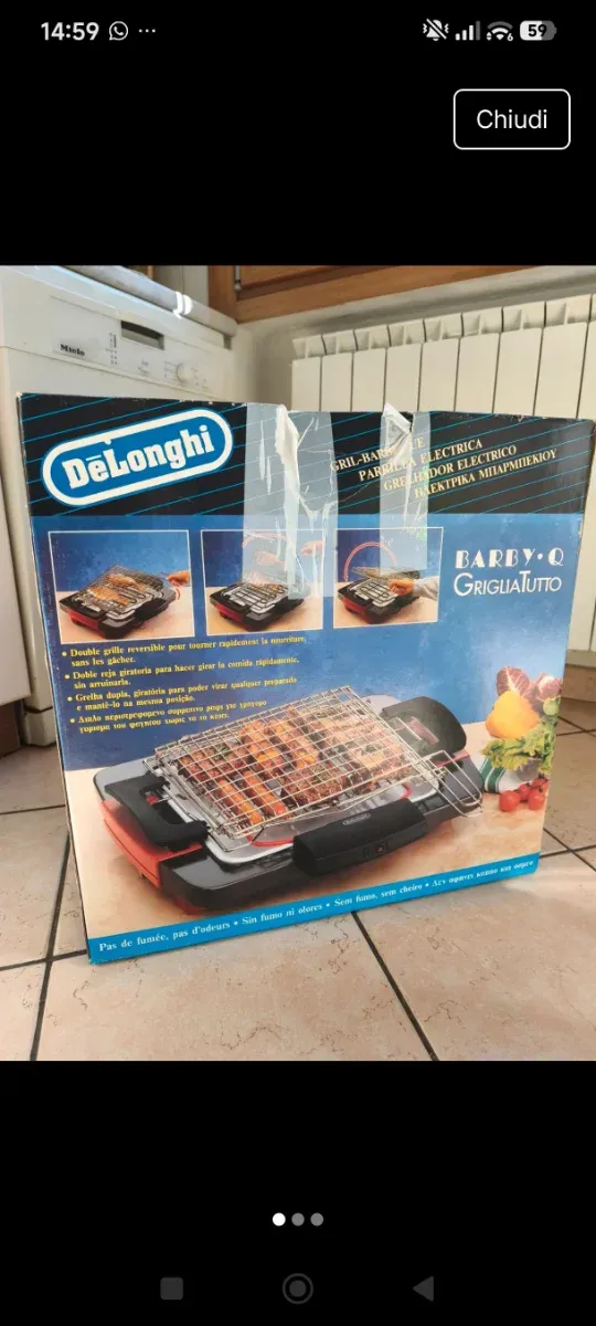 Griglia elettrica DeLonghi modello Barby-Q. - Adatta per uso interno ed esterno. - Facile da pulire. - Design compatto.