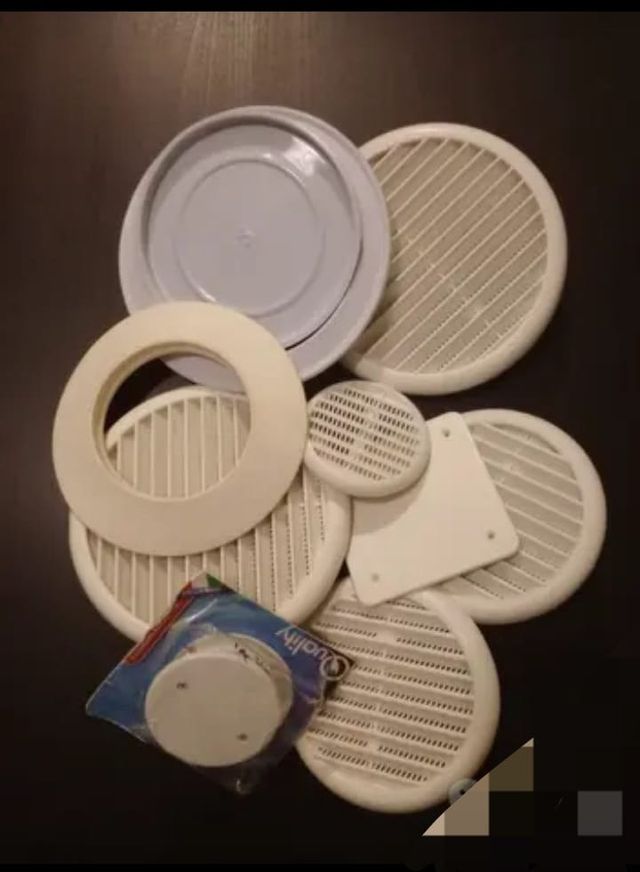 1_Vari pezzi griglie ventilazione in plasti ca 20€ 2-Staffe mensole per fissaggio in plastica bianca (8 pz) ,10€