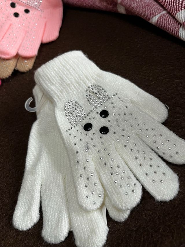 Guanti bambina bianchi con borchie e strass