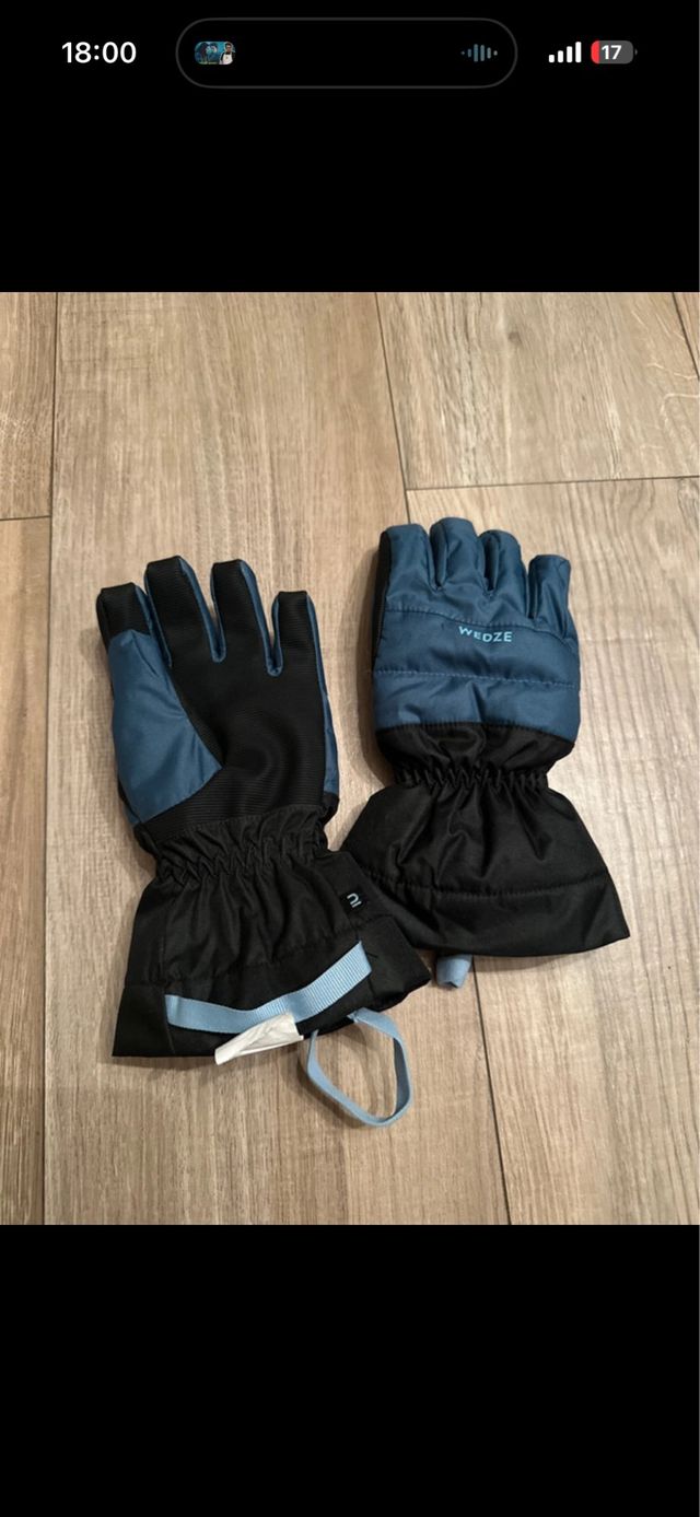 Guanti da neve per bambino della marca Wedze. - Colore blu e nero. - Polsino elasticizzato. - Laccetto di sicurezza.