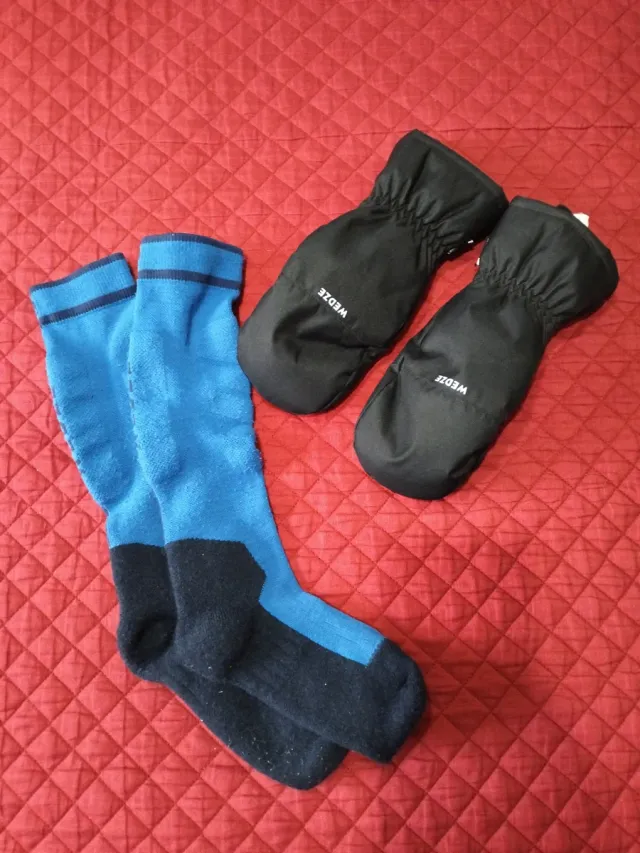 Set di guanti e calzettoni da neve Wed'ze. - Guanti neri tg 10 anni. - Calzettoni blu e neri tg 35-38 ⚠️ Guanti identici disponibili anche tg 12