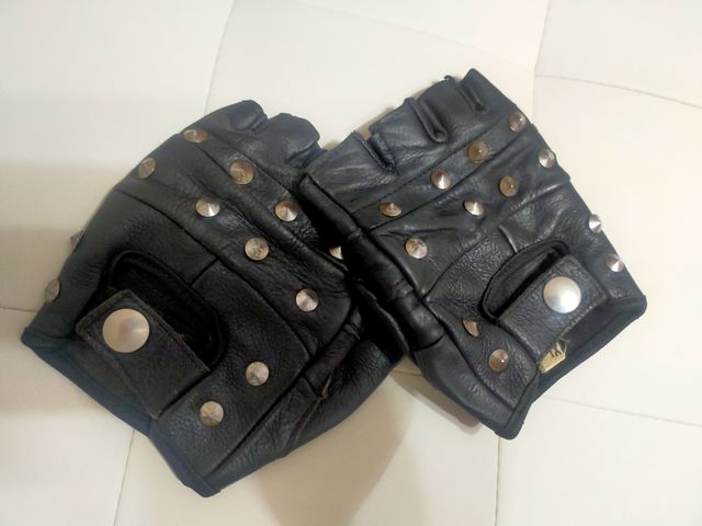 Dettagli del prodottoGuanti senza dita in vera pelle con borchie cromate. Taglia XL.