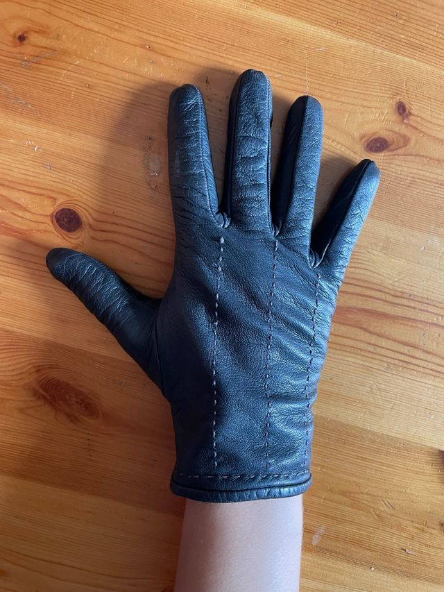 Guanti Yves Saint Laurent YSL, pelle nera e seta