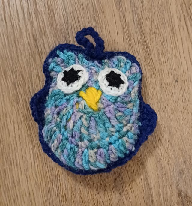 Gufetto azzurro e blu, portachiavi, portafortuna. Fatto a mano