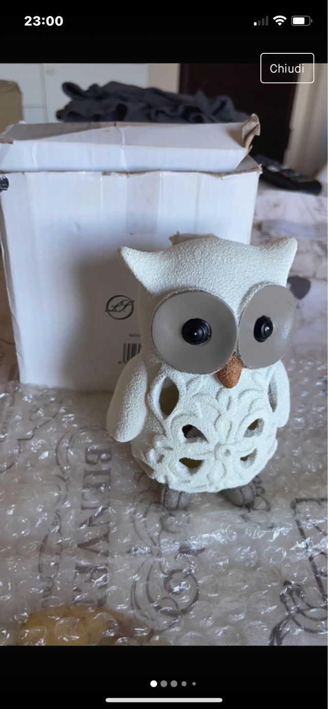 Gufetto ceramica traforato, piccola lampada, ottima idea regalo, nuovo con scatola