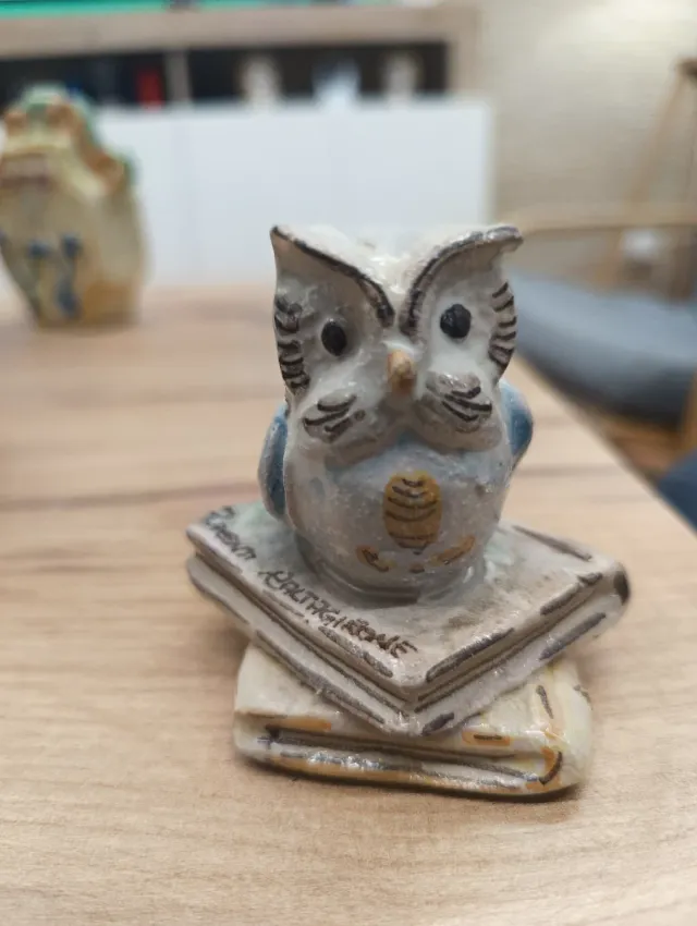 Grazioso gufetto in ceramica seduto su due libri. - Dettagli dipinti a mano. - Ideale come soprammobile o regalo. #ceramicadicaltagirone