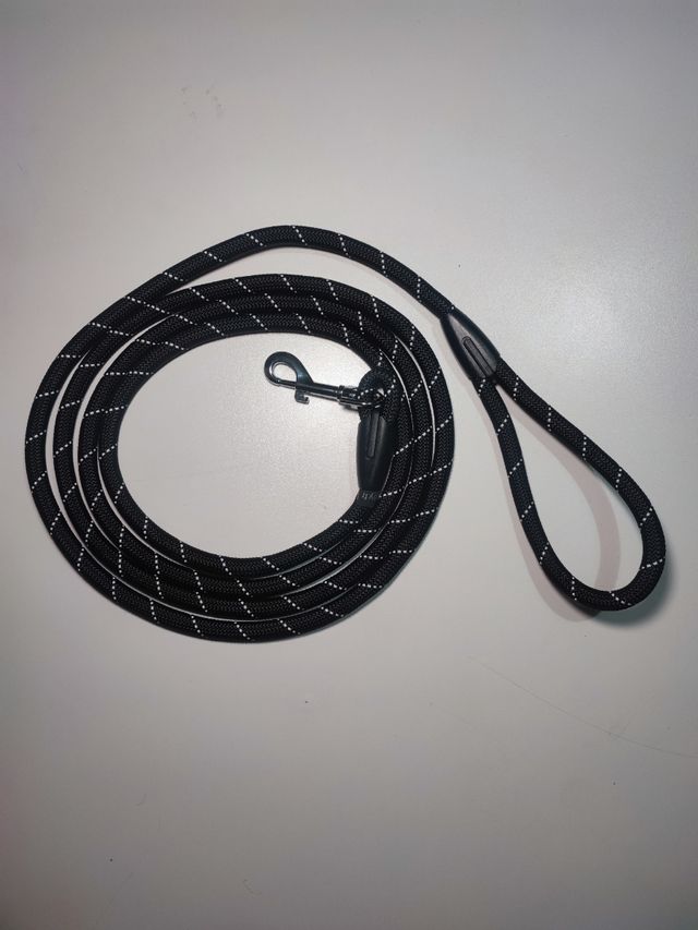 Dettagli del prodottoGuinzaglio per cane in corda di nylon resistente di colore nero. lunghezza 3 metri Spessore 1,2cm.