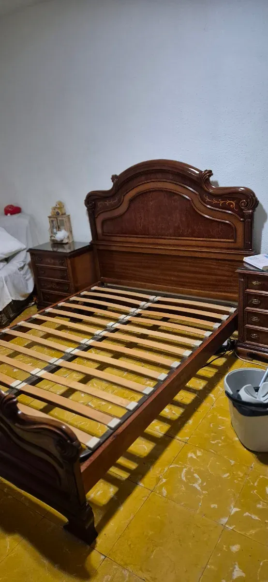 Camera in legno: letto, comodini e cassettiera