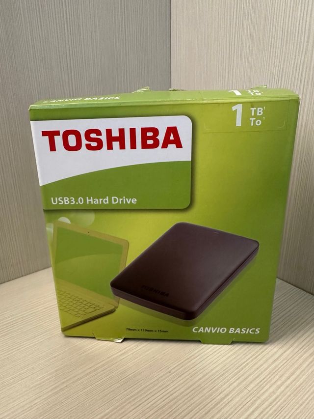 Hard disk esterno Toshiba Canvio Basics da 1TB. - Connessione USB 3.0. - Design compatto e portatile.