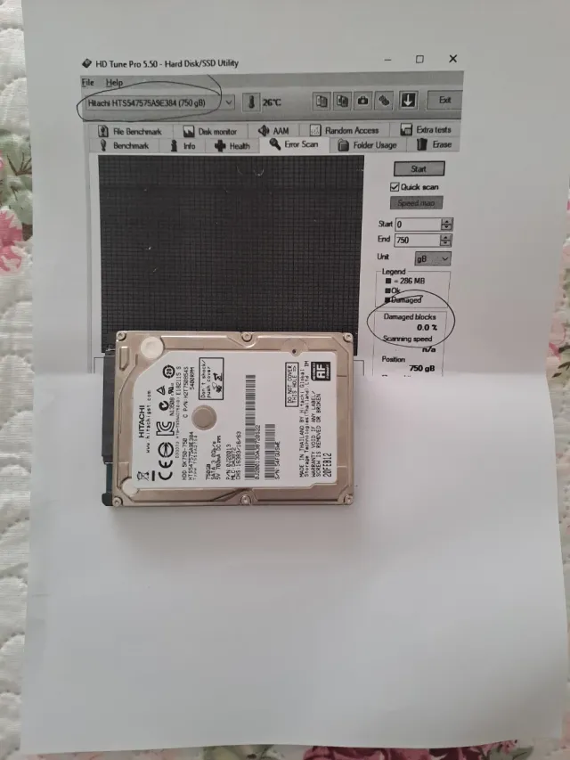 Hard disk esterno Hitachi da 750 GB. - Modello HTS547575A9E384. - Capacità 750 GB.